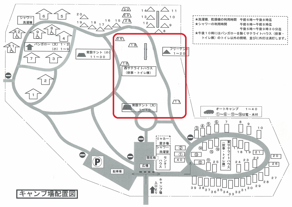 ・デッキサイトは4区画あり、幅3m×長さ4m×高さ40cmのデッキにポータブル電源1台、ハンモック1張が付いています。