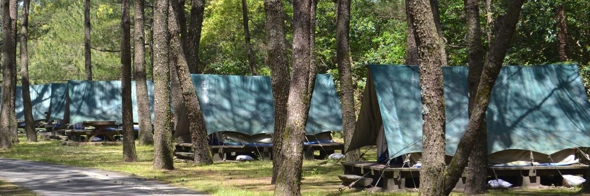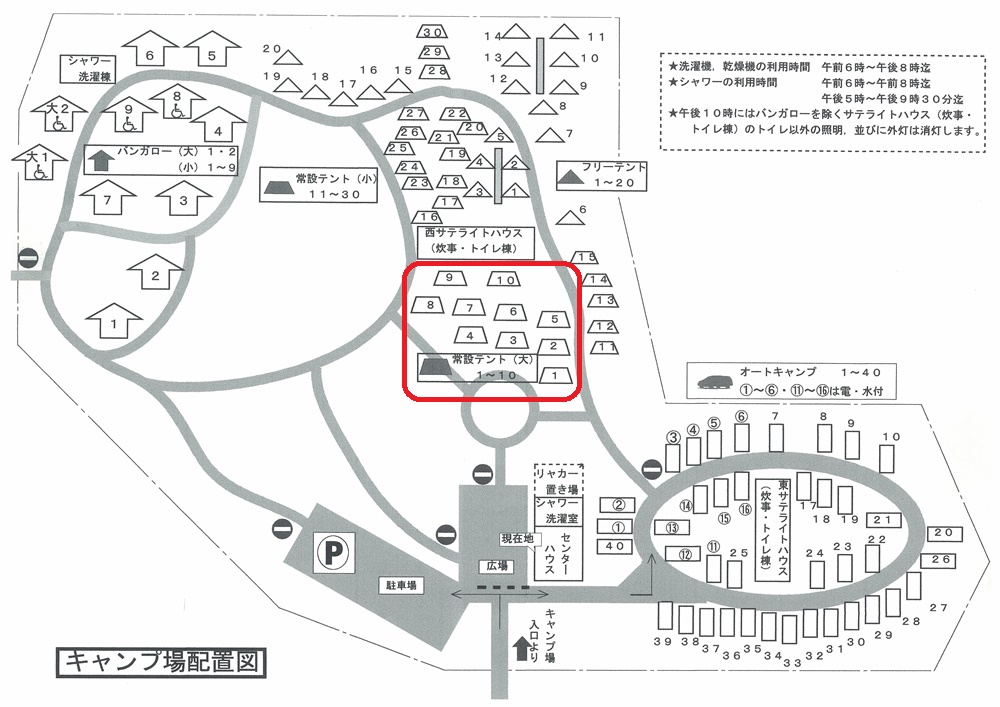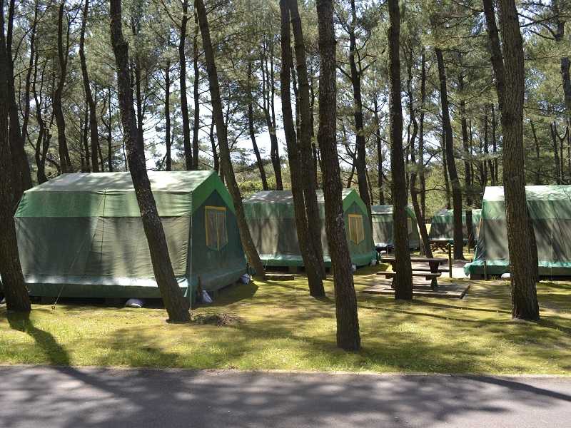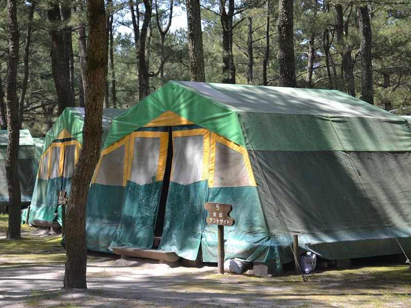 常設テントは6区画あり、テントを持たなくても気軽にキャンプが楽しめます。