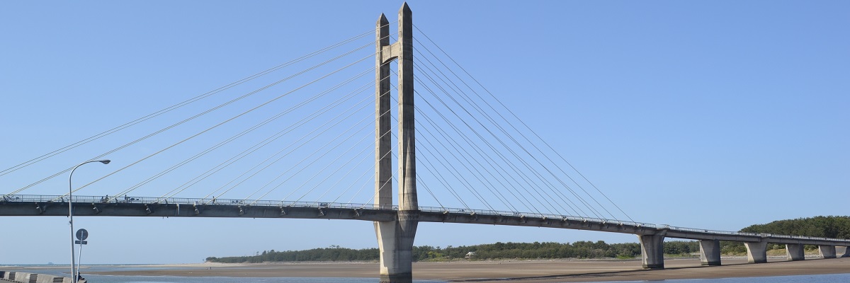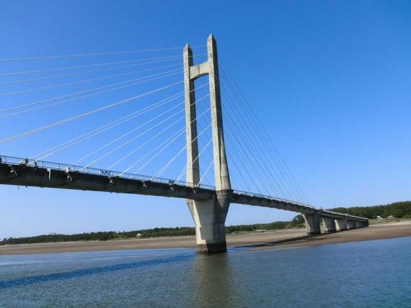 橋の周囲には広大な干潟が広がり、天然記念物のハマボウの群落やハクセンシオマネキ,ハンミョウ,貝など 干潟とその周辺でくらす数多くの生物が見られます。