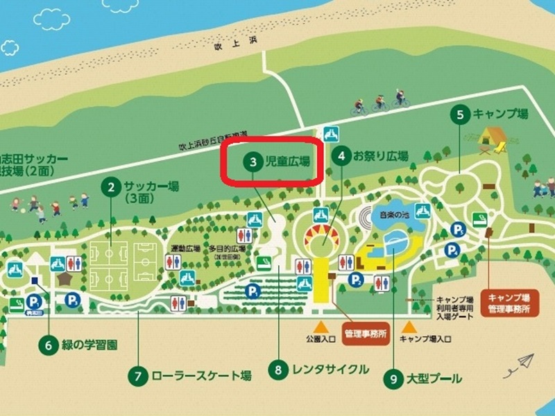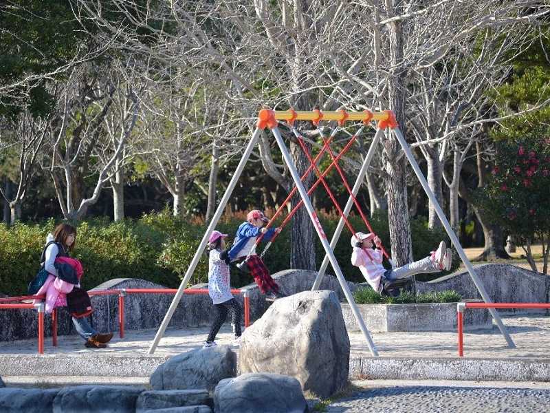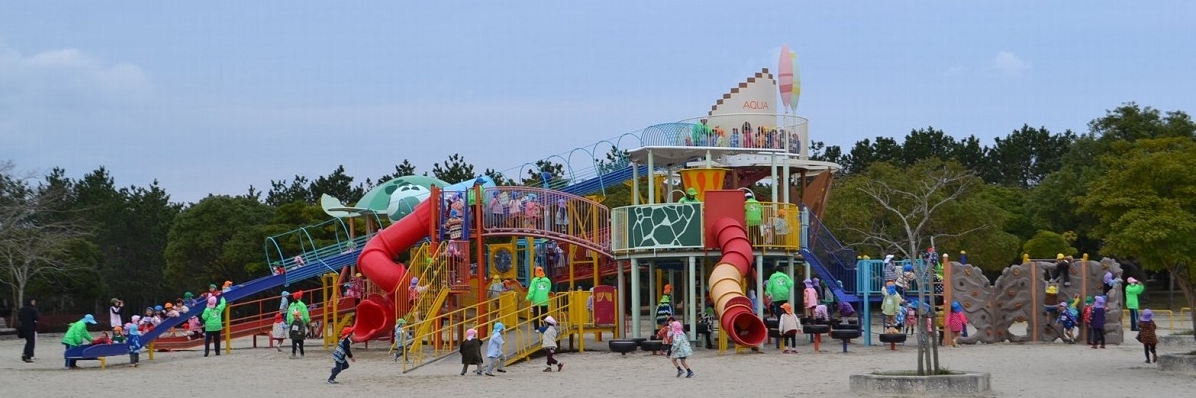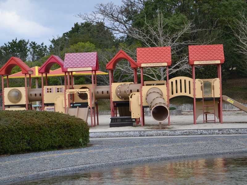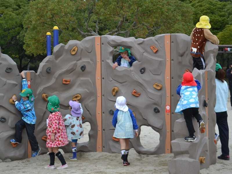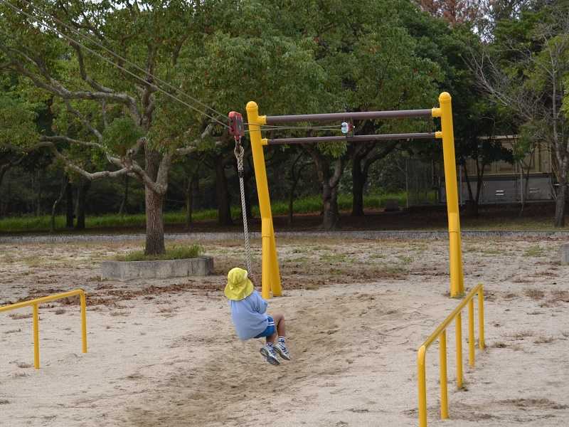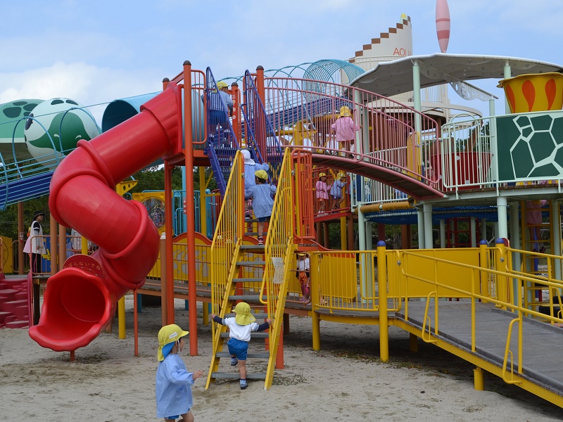 児童広場はサイクリングセンターに隣接し、子供たちの冒険心を掻き立てる大型遊具が設置されています。